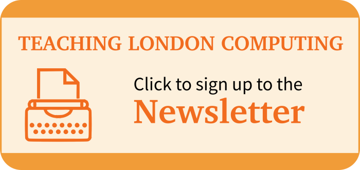 Use the orange form to sign up to receive by email the Teaching London Computing newsletter which contains information about courses, resources, events and various items of interest. We also recommend subscribing to our blog(s) (see below) for the most up to date info. Previous newsletters live here.