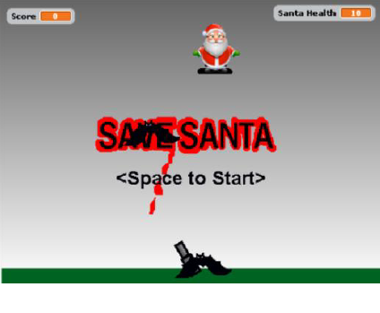 Computing At School (CAS) is a free resource hub (with info about events and classroom resources) for computer science teachers in the UK. There’s a thriving community section in which people can share their ideas for activities, and one of them is this game ‘Santa Shoot’ game, from Conor Grimes. Players need to shoot down bats that are getting in Santa’s way.