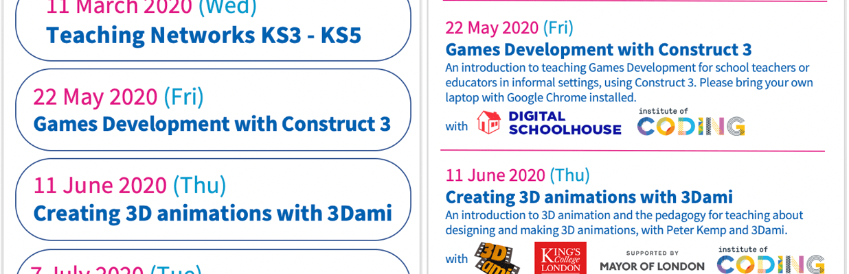There are LOTS of courses for computing teachers and educators in London and beyond. Our previous blog post highlighted some organised by STEM Learning (face to face), FutureLearn (online) through the NCCE which offers bursaries to eligible schools.