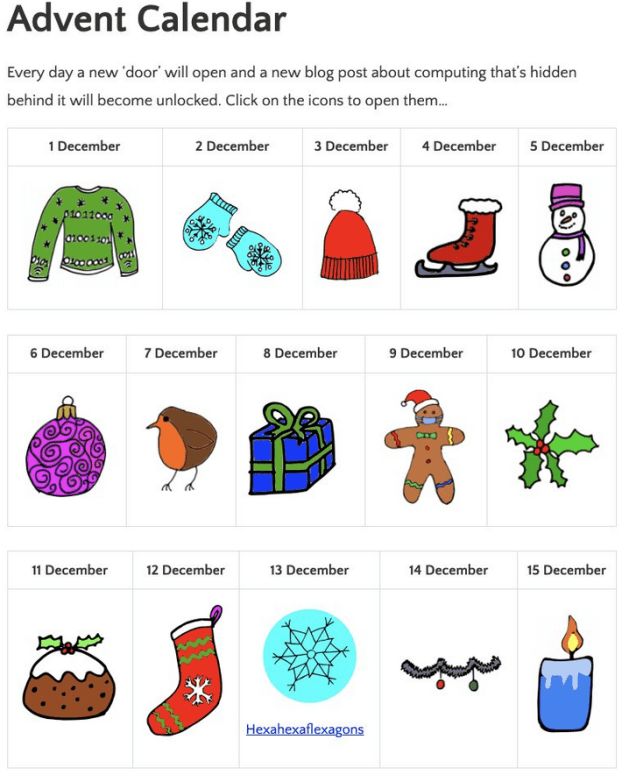 There are some posts from our archives (CS4FN has been going since 2005 so we have a LOT of material) and some newer stuff too. We’re having lots of fun with it. We hope you are enjoying it too. Merry Christmas from CS4FN and Teaching London Computing :)