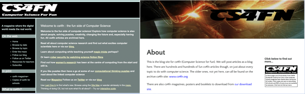 CS4FN – original site (~2005) is https://www.cs4fn.org and we are moving all the articles (and adding new ones) to the newer and whizzier https://cs4fn.blog