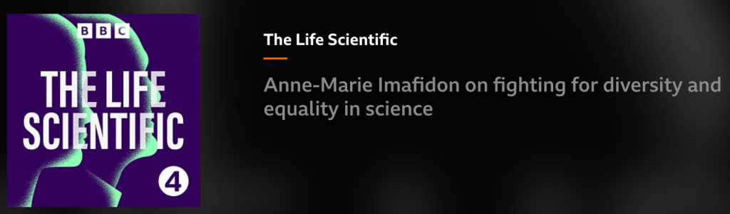 • The Life Scientific (Jim Al-Khalili interviews her for his podcast, recorded at the Cheltenham Science Festival), ~25mins