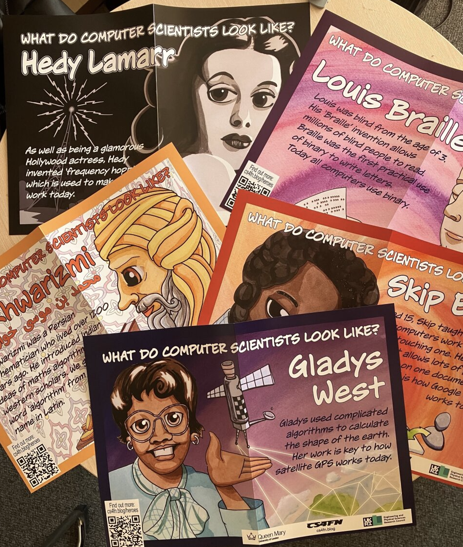 We can now send a set of our 5 A3-sized Computer Science Hero posters completely free to primary computer science teachers, librarians and home educators in the UK. Please click the pink button below (or this link) to fill in the form and we’ll send you a set.