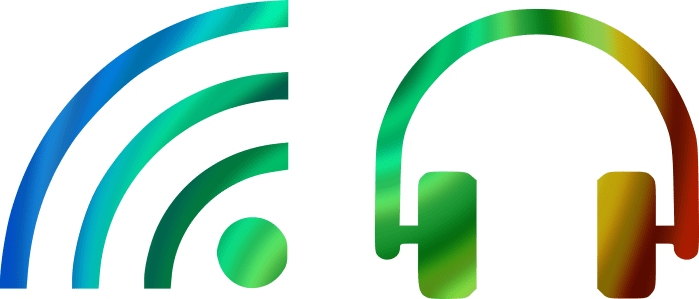 Icon credit: Headphones and RSS icons from Microsoft PowerPoint, cut into swirl pattern by Macey11 from Pixabay.