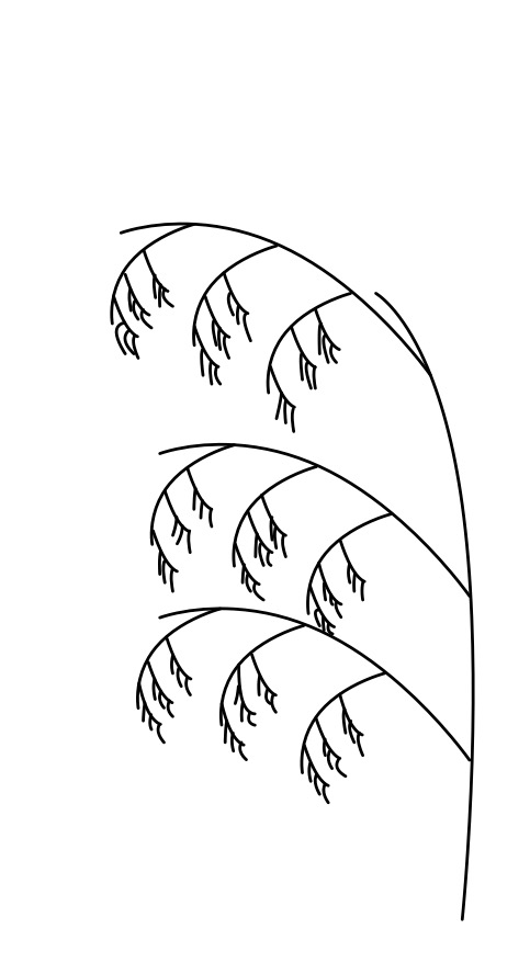 Now start doodling and invent your own algorithmic doodle art. Perhaps it is a kind of grass, or a bush or tree. Perhaps it is a fabulous beast. Once you have doodled something you like, write the “recursive” rules that generate different variations of it.