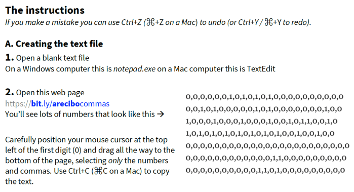 Arecibo Pixel Puzzle – planets and telescope