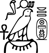 Egyptian hieroglyph pixel puzzle – download the PDF, print and colour in. This uses Egyptian numeral hieroglyphs (find out more) to represent colours in a mosaic.
