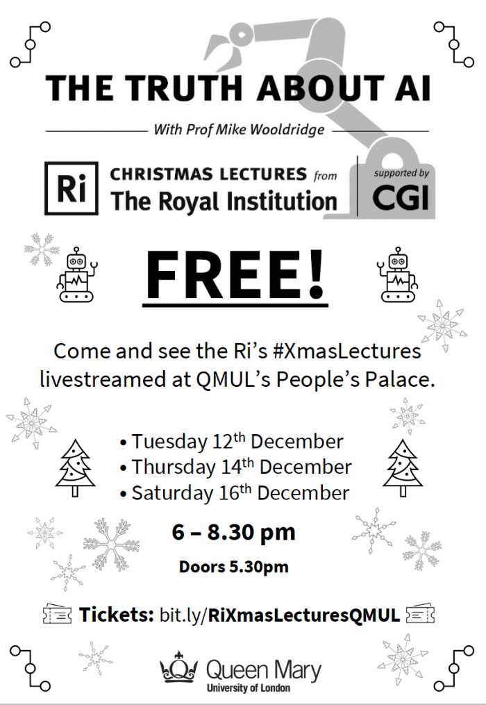 This year the lectures will also be livestreamed to a variety of venues around the UK and Queen Mary University of London is one of them! We’ll be screening the livestream at the People’s Palace in Mile End and also at the Neuron Pod (Centre of the Cell) in Whitechapel. Other venues around the UK will also be screening the livestream.
