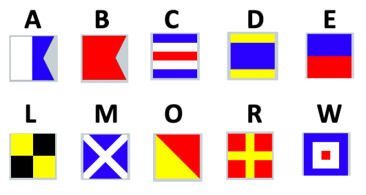 For some messages though you might still want to spell out the words. Here’s an incomplete message (the photographer didn’t capture all of the flags) but using the letters below can you work out what the full phrase says? There are two words and you need to start at the top of each string of flags. (Answer at the end)