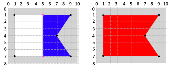Both flags start at point (1,1). The point on the right of the flag is at (9,1) in both and you don’t need the point at (5,1) , for example, in the red flag.